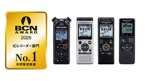 OMデジタルソリューションズ株式会社(代表取締役社長 兼CEO:杉本 繁実)が展開する映像製品ブランド「OM SYSTEM」は、株式会社BCN主催の「BCN AWARD 2025 ICレコーダー部門」において、国内年間販売数量 No.1を受賞したことをお知らせします。この度の受賞により、当社のICレコーダーは10年連続※1で日本国内年間販売数量No.1を達成し、2024年の国内年間販売数量シェア41.7%※2を獲得しています。